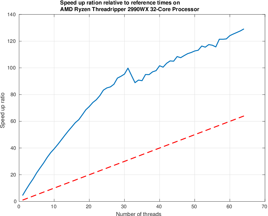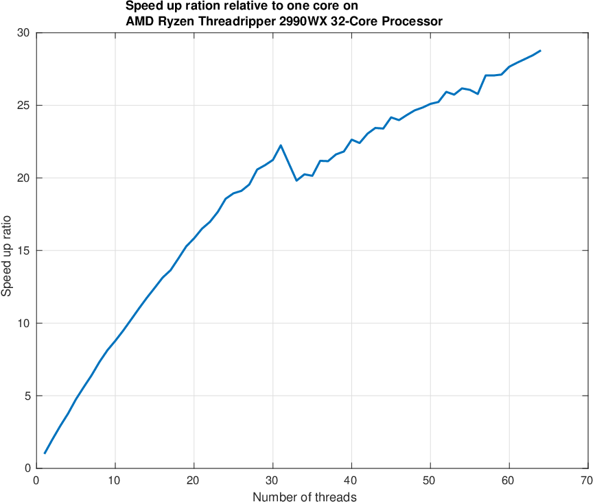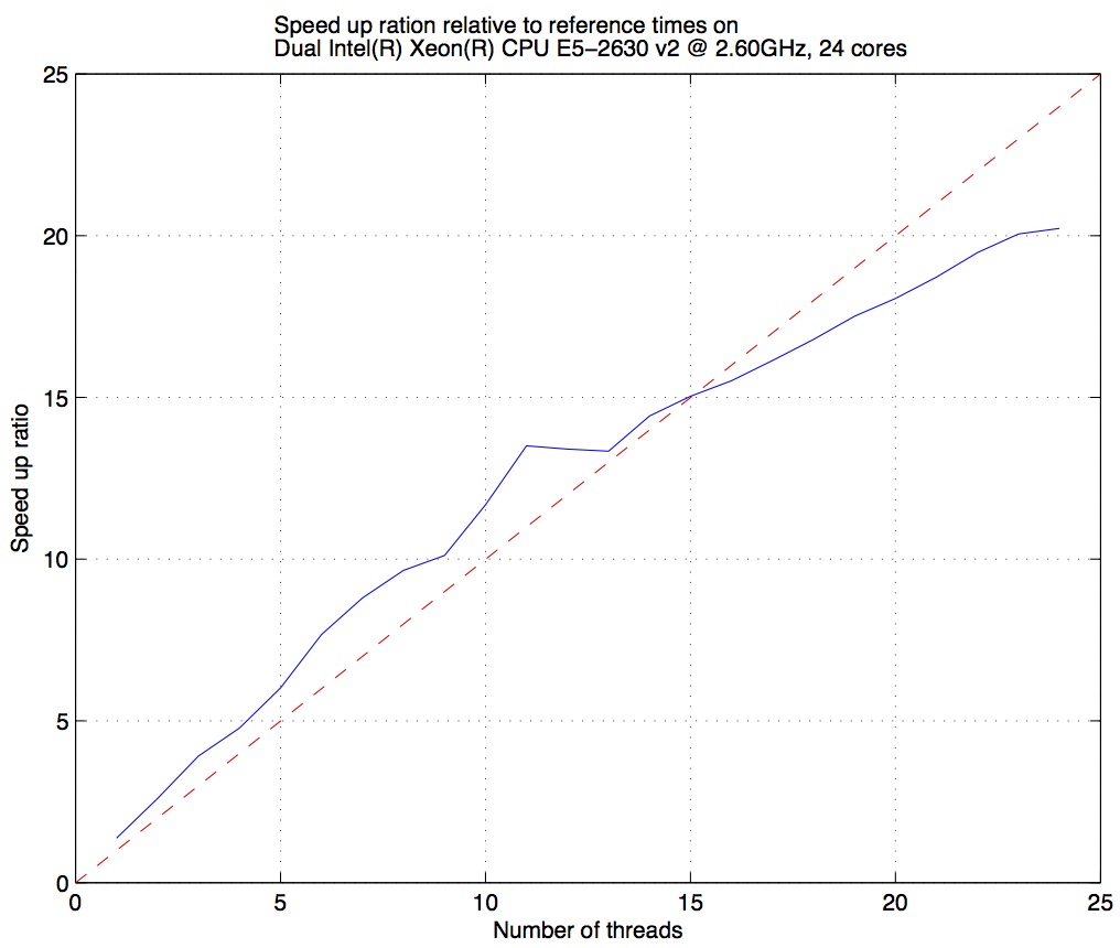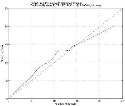 Below is shown an example of the speed-up ratio relative to one core on